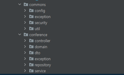 리팩토링 후의 구조이다. config, securtiy, util 과 같이 서비스 전반에 사용되는 패키지들은 commons로 빼서 정리하였다.